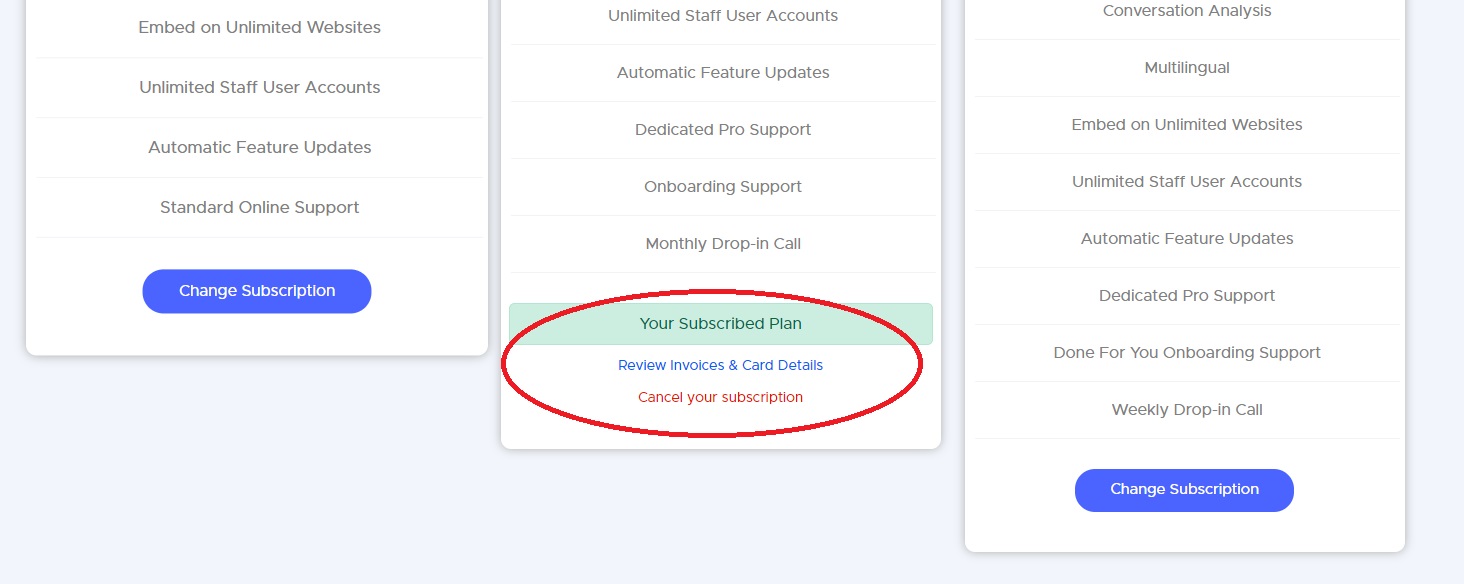 To cancel a subscription go to ***Account > Subscription**,* then click on *"*&#x43;ancel your subscription"*.*